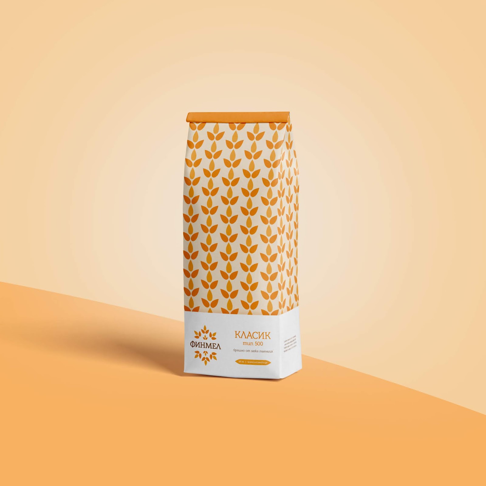 這是Finmel面粉包裝設計,整體顏色選擇上偏清雅舒適,屬于大地色系,很符合小麥面粉這一行業特性,很好的的傳達了產品的屬性。同時用小麥為原型的品牌符號為主,僅做顏色區分,讓整個系列形成一種統一感,再不斷的重復品牌符號來加深品牌的印記。然后去掉了原本的面粉的編織袋,換成OPP復合牛皮淋膜紙的材質,使整個產品的品質感得到明顯的提升。